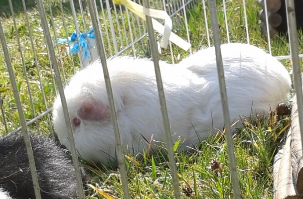 | |  | |  | Cuy Charlotte besucht den Nachbar, Kastrat Washington | | Mist, da passt nur die Nase durch :( | | Cuydame Chiara auf Erkundungsrundgang mit Idaho |